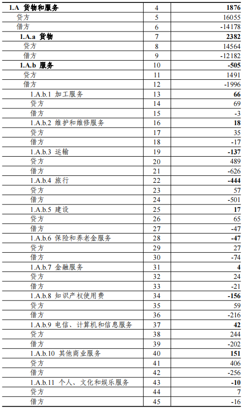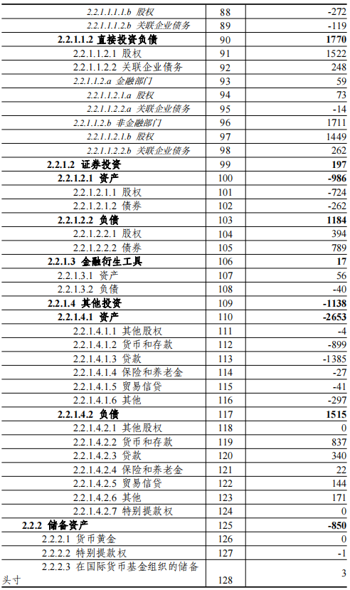 注:1.本表根据《国际收支和国际投资头寸手册》(第六版)编制,统计的是中国居民与非居民之间发生的一切经济交易。中国居民遵循经济体原则,不包括中国香港、澳门特别行政区、中国台湾地区的机构和个人等。因此,上述三个地区与境内的贸易和投资往来属于境外与我国的交易。
