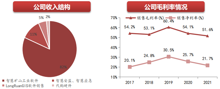 从收入结构来看,智能矿山工业软件为公司主要产品。2021年智能矿山工业软件业务实现收入2.4亿元,同比增长60.2%