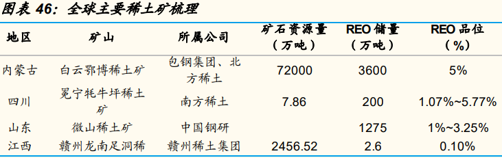 其中,中国主要轻稀土矿有:白云鄂博稀土矿、四川冕宁稀土矿和山东微山稀土矿;主要重稀土矿有:南方七省稀土矿。