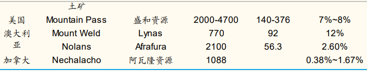 海外稀土供给主要集中在美国Mountain Pass、澳大利亚Mount Weld、 Nolans和缅甸稀土矿。
