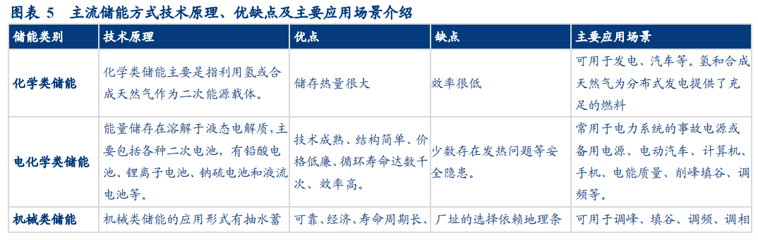 主流储能方式主要有化学类储能、电化学类储能以及机械类储能。化学类储能主要是指利用氢或合成天然气作为二次能源载体。能量储存在溶解于液态电解质,主要包括各种二次电池,有铅酸电池、锂离子电池、钠硫电池和液流电池等,机械类储能的应用形式有抽水蓄能、压缩空气储能和飞轮储能。