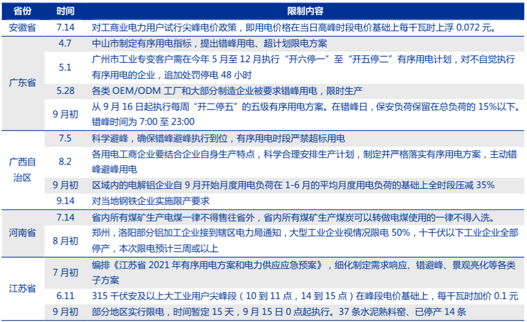 各地限电信息汇总