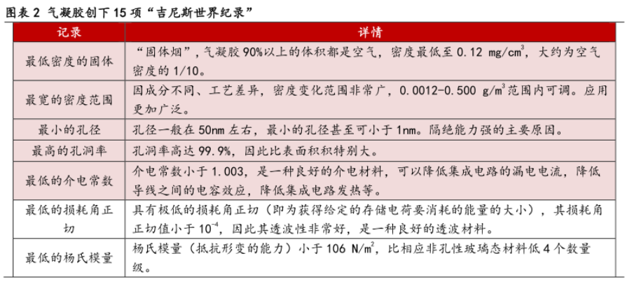 项目“吉尼斯世界记录”,独特的纳米多孔结构使气凝胶具有具有高孔隙率、高比表面积、超低密度等特性。