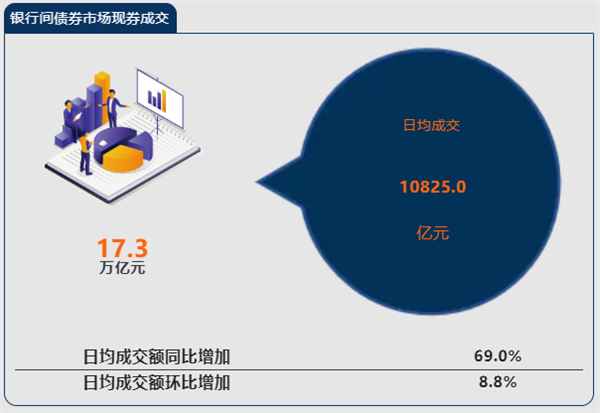 2月份,银行间债券市场现券成交17.3万亿元,日均成交10825.0亿元,同比增加69.0%,环比增加8.8%;单笔成交量主要分布在500-5000万元,单笔平均成交量4904万元。交易所债券市场现券成交2.1万亿元,日均成交1281.9亿元,同比增加54.3%,环比增加4.4%。商业银行柜台市场债券成交12.2万笔,成交金额138.6亿元。