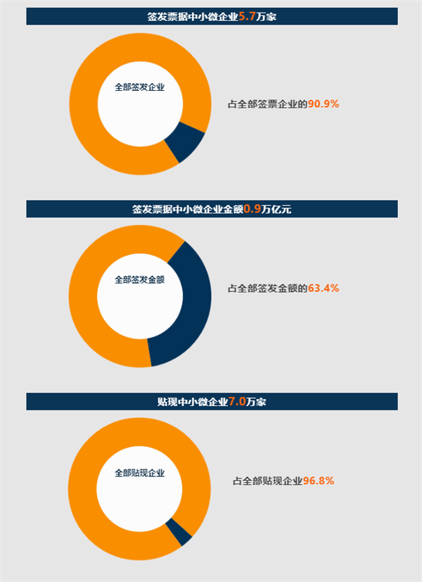 2月份,签发票据的中小微企业5.7万家,占全部签票企业的90.9%,中小微企业签票发生额0.9万亿元,占全部签票发生额的63.4%。贴现的中小微企业7.0万家,占全部贴现企业96.8%,贴现发生额0.8万亿元,占全部贴现发生额72.0%。