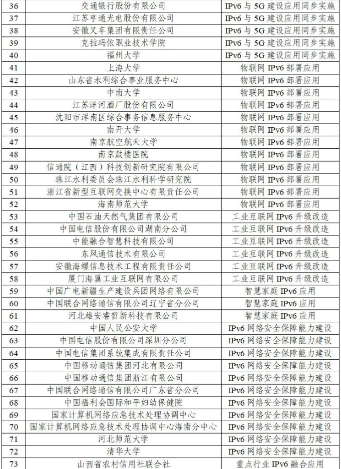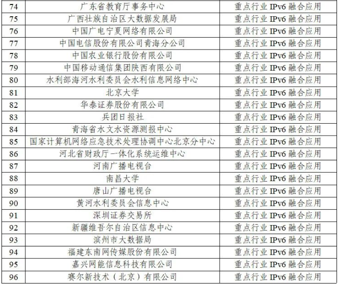 IPv6技术创新和融合应用试点名单发布,具体名单一览