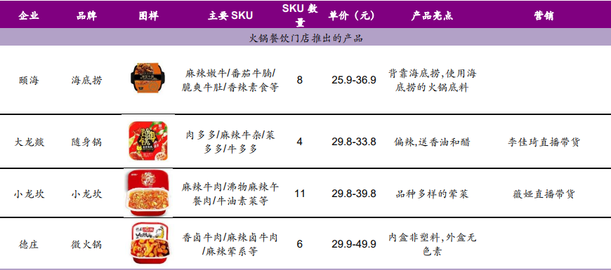颐海占据自热火锅行业领先地位。2017年颐海开始推出自热小火锅产品,凭借线下渠道网络优势,19年收入达到近10亿元,表现十分亮眼。自嗨锅重视品牌,通过多样化的宣传营销打造品牌影响力,19年营业额超过5亿元。莫小仙以极致性价比成功切入赛道,19年预计收入超过4亿元。