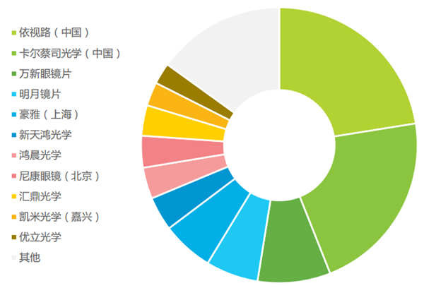 2020年中国眼镜镜片市场份额情况(按销售额划分)