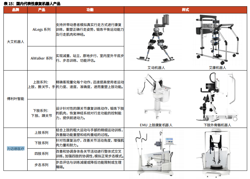 下肢康复机器人:主要针对下肢治疗康复过程中的运动技能恢复提供训练。