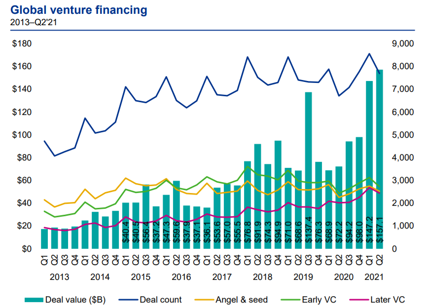 2013——2021年Q2全球风险融资