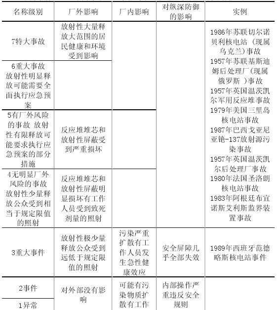 1990年,IAEA(国际原子能机构)制定并颁发了INES(《国际核事故分级标准》),按危害程度从轻到重将核事故划分为七级。