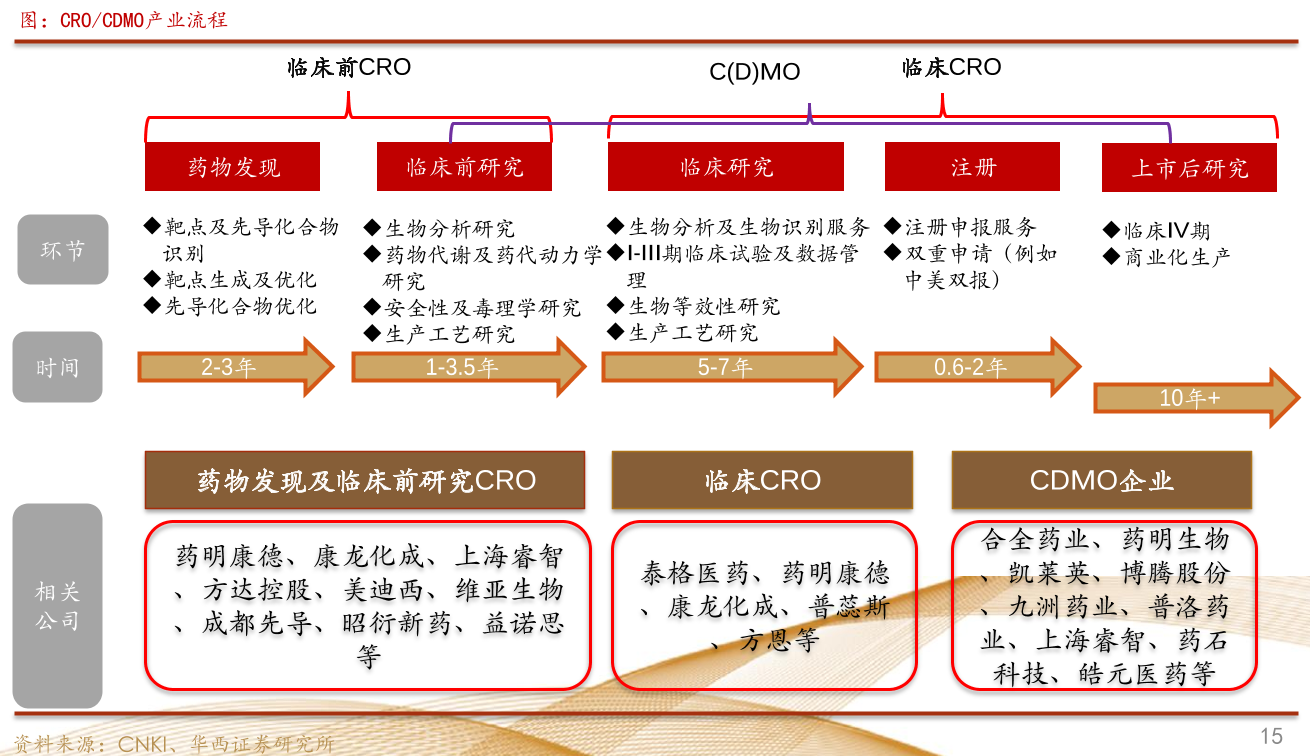 (3)如果仅仅是在工艺研发、注册申报、药物生产阶段选择CRO,则这一阶段的CRO被称为CDMO。