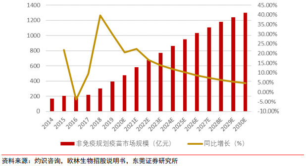 据灼识咨询报告预测,中国非免疫规划疫苗市场规模将由2019年394亿元增长至2030年的1298亿元,年复合增长率为11.45%。