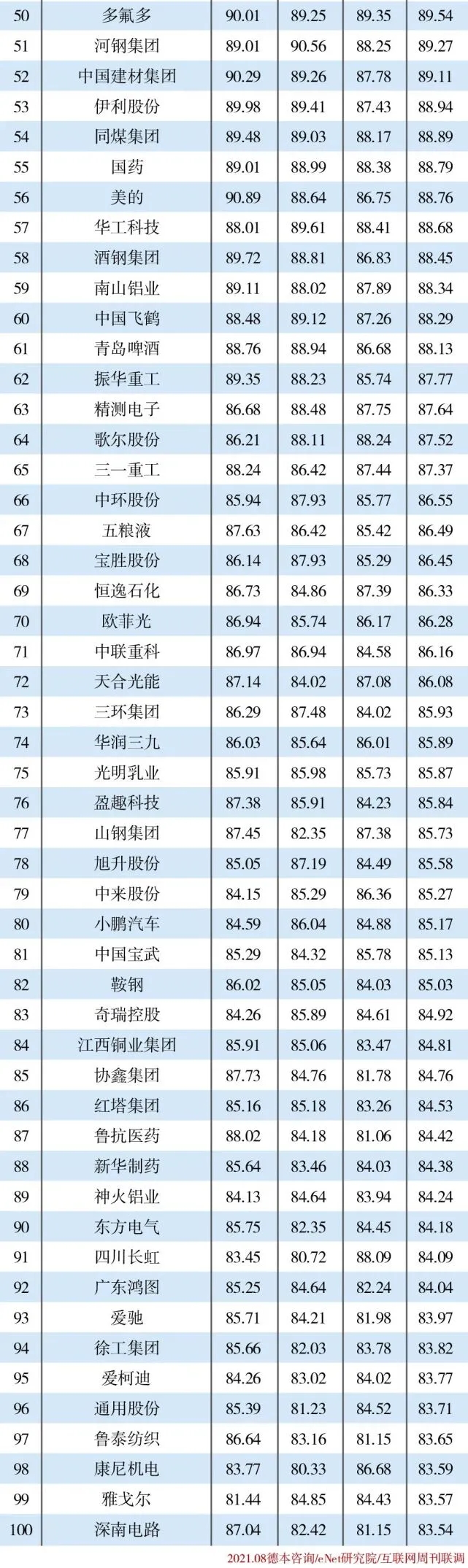 根据《互联网周刊》联合eNET研究院、德本咨询发布的“2021智能工厂TOP200”排行,2021年我国智能工厂TOP10依次是:中国航天科工、格力电器、中国中车、中国商飞、海康威视、吉利控股、比亚迪、京东方、宝钢股份、海尔智家。