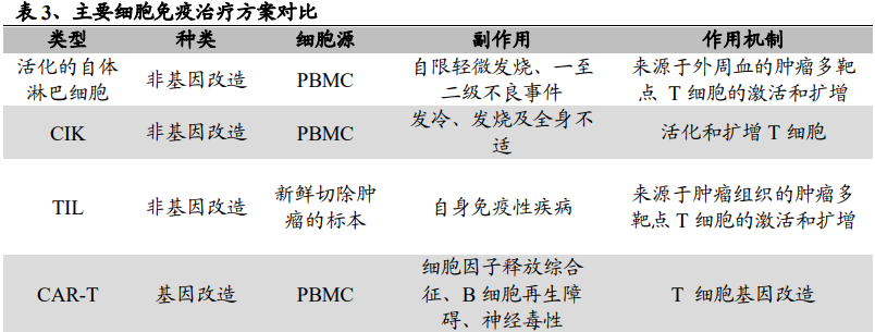 根据产品类型的不同,细胞免疫治疗又可进一步分为活化的自体淋巴细胞(AAL)、CIK、CAR-T 等多种类型。
