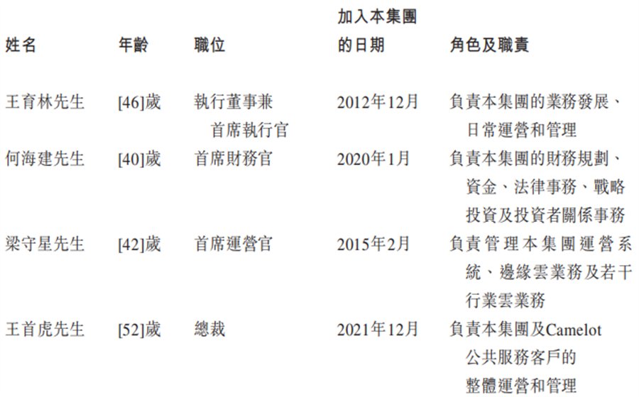 [42]岁,现为我们的首席运营官,负责管理本集团运营系统、边缘云业务及若干行业云业务。