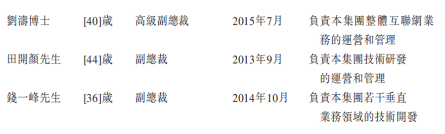 [40]岁,为我们的高级副总裁,负责本集团整体互联网业务的运营和管理。