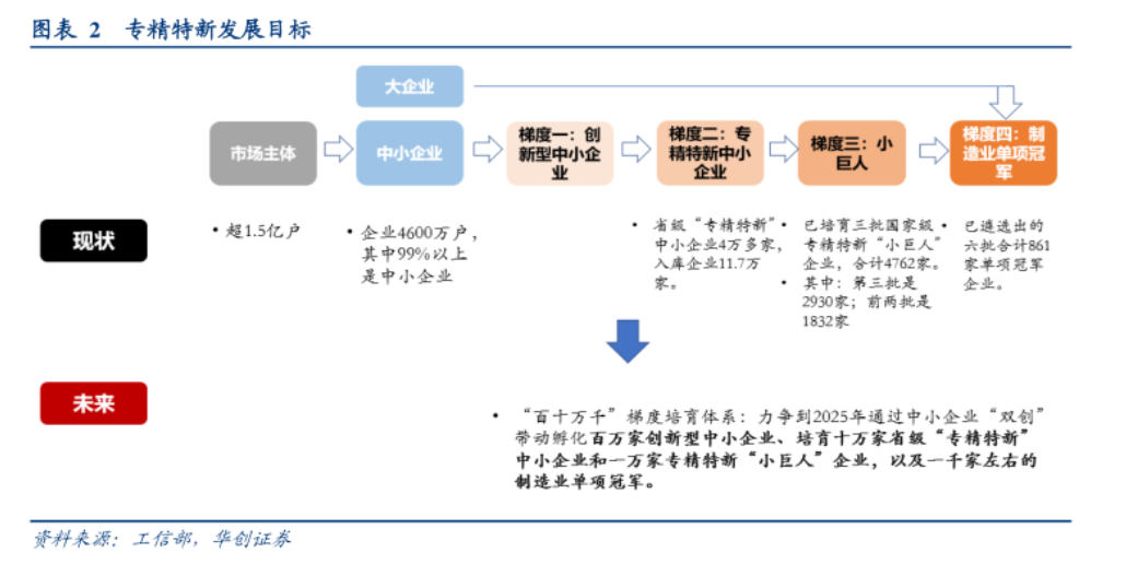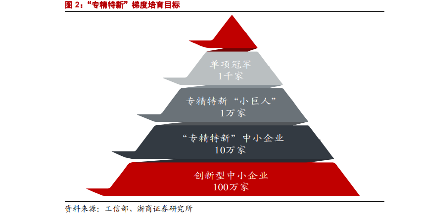 专精特新“小巨人”企业是“专精特新”中小企业中的佼佼者,是专注于细分市场、创新能力强、市场占有率高、掌握关键核心技术、质量效益优的排头兵企业。“专精特新”小巨人企业强调“专精特新”这种企业发展模式,是企业实现单项冠军和隐形冠军这一市场地位的发展路径。政府鼓励和支持这种发展模式,尤其是希望中小企业通过“专精特新”发展之路,不断提高发展质量和水平,增强核心竞争力,最终成长为更多的单项冠军和隐形冠军。专精特新小巨人由工信部认定。2018年开展“专精特新”小巨人培育工作首次提出,政策目标在于在专精特新企业中择优培育“专精特新”小巨人,促进其在创新能力、国际市场开拓、经营管理水平、智能转型等方面得到提升发展。此后,工信部在2019-2021年公布了三批“专精特新”小巨人名单,入选企业数目分别为248、1744及2930个,入选企业数目不断扩大。